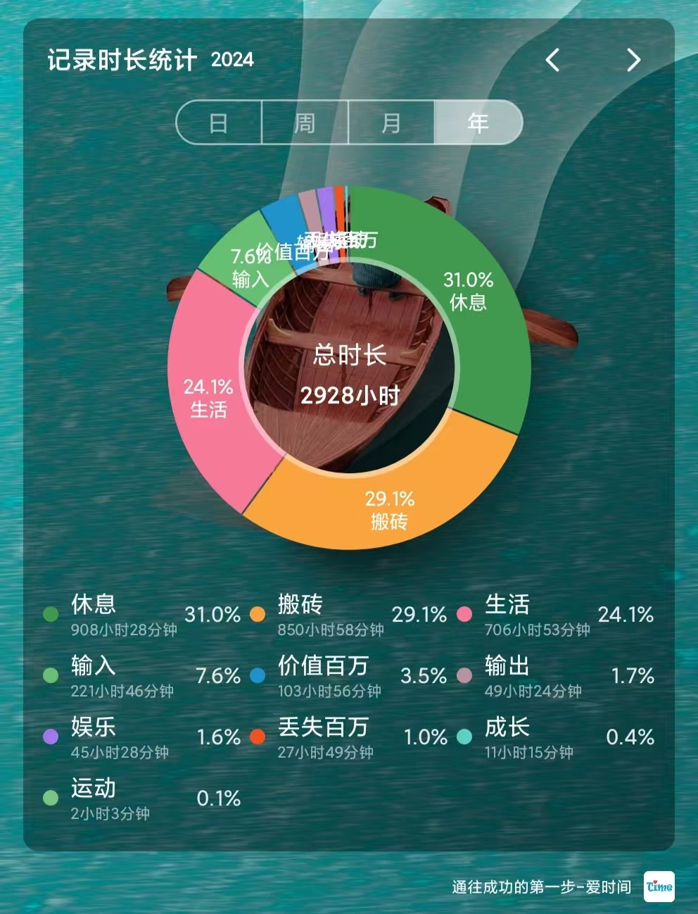 2024年坚持比较好的习惯,包括早起打卡、阅读学习、时间记录、每日复盘,其中时间记录更是做到了日日不断。