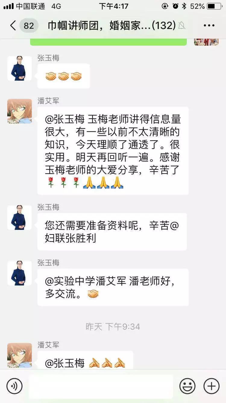 近日,县妇联成立巾帼讲师团,建立微信工作群,定期在群内讲微课,传播科学、文明、进步的婚姻观、家庭观,致力于共同维护妇女儿童的合法权益,促进家庭幸福,社会稳定。