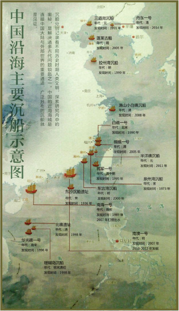 中国的海岸线长达18000多公里,海域面积由原来的360万平方米增加到400多万平方米,境内又有众多的江河湖泊,航船历史源远流长。唐宋以来,中国与世界各国通过海上丝绸之路往来频繁,因此在中国的海疆不断发现历代沉船遗址,显示了当年蓬勃兴盛的海上贸易,也是今天维护国家主权和海洋权益的重要依据。 海上考古使人们对水下遗产有更多的认识,但频繁的水下活动也让文物易遭劫掠和破坏,因此目前国家十分重视水下文化遗产保存。 上世纪80年代末,中国历史博物馆(现中国国家博物馆)馆长俞伟超先生率先提出发展我国的水下考古事业。水下考古是考古学的一个分支与组成部分,结合了海洋学、生物学、环境学、工程力学、测绘、遥感等学科。