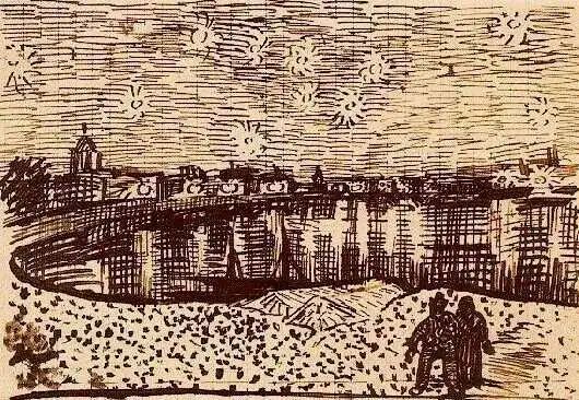 《罗纳河畔的星夜》在信件中的草稿,1888年
