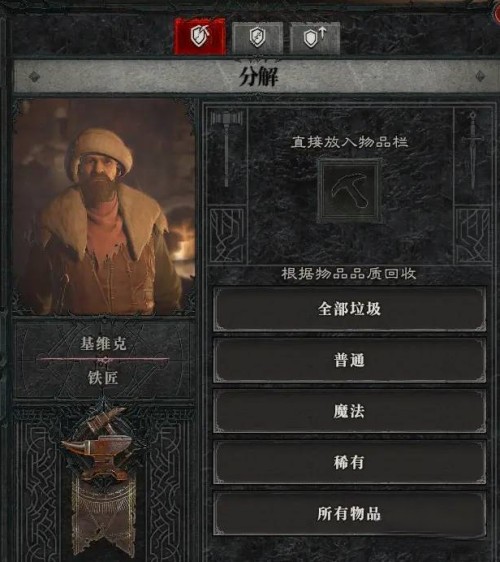 铁匠可以分解装备,也可以升级我们的装备和护甲(不包括首饰)升级武器可以,如下图所示。