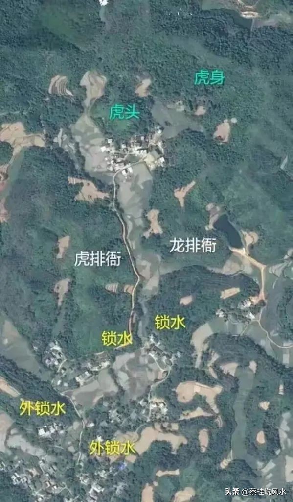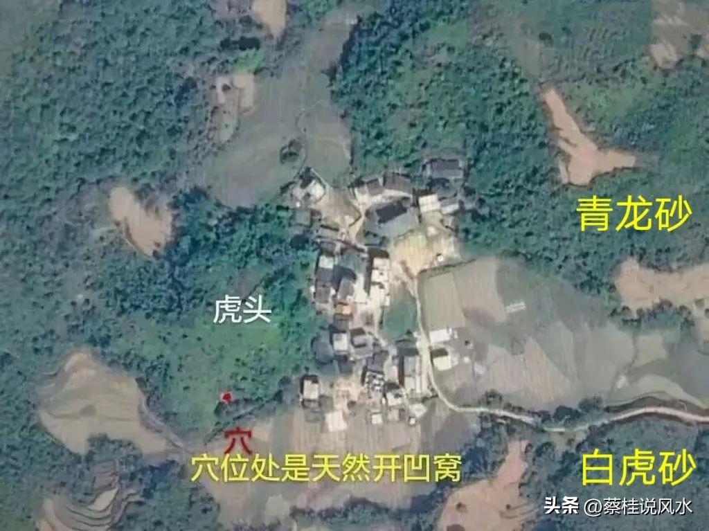 第一,老虎的头部圆溜溜的,就像现实中的老虎一模一样,结穴处刚好开了一个天然凹窝,俗话讲:金星不开口,神仙难下手。结穴四大形态:窝、钳、乳、凸!证明此处真龙真穴无疑了。还有两条河水从虎头两边流出,在虎头前方明堂处交汇。