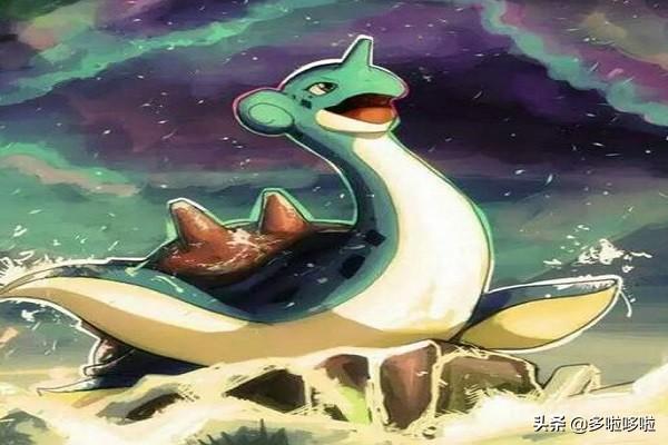 又名拉普拉斯,但还是习惯了小时候的翻译叫乘龙。乘龙的背部有非常坚硬的灰色外壳,据说壳上看起来凹凸不平的突起,是为了让搭乘者更稳固的抓牢自己保证安全。乘龙的智商很高,能听懂人类的语言,个性温和不喜欢战斗,但也因为这样的个性被人类大量捕捉而濒临灭绝,变得十分稀有。