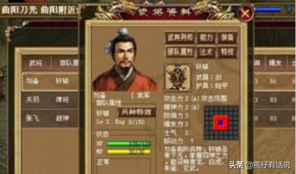 7、接下来我们来看看游戏操作上的一些设定,操作简单,整个游戏基本用鼠标操作完成,存档读取方便,极易上手,并且在游戏中增添了人物培养模式,每个人物都有不同的属性成长,通过使用不同的果子增加属性达到最佳人物成长,让玩家自由的培养心中的第一物武将。具体的培养方式在游戏设定中都会有详细介绍,在游戏在中期刘备麾下猛将已经基本齐聚,关羽,张飞,赵云,黄忠等看到耳闻目染的豪杰不知各位是否已经心动。
