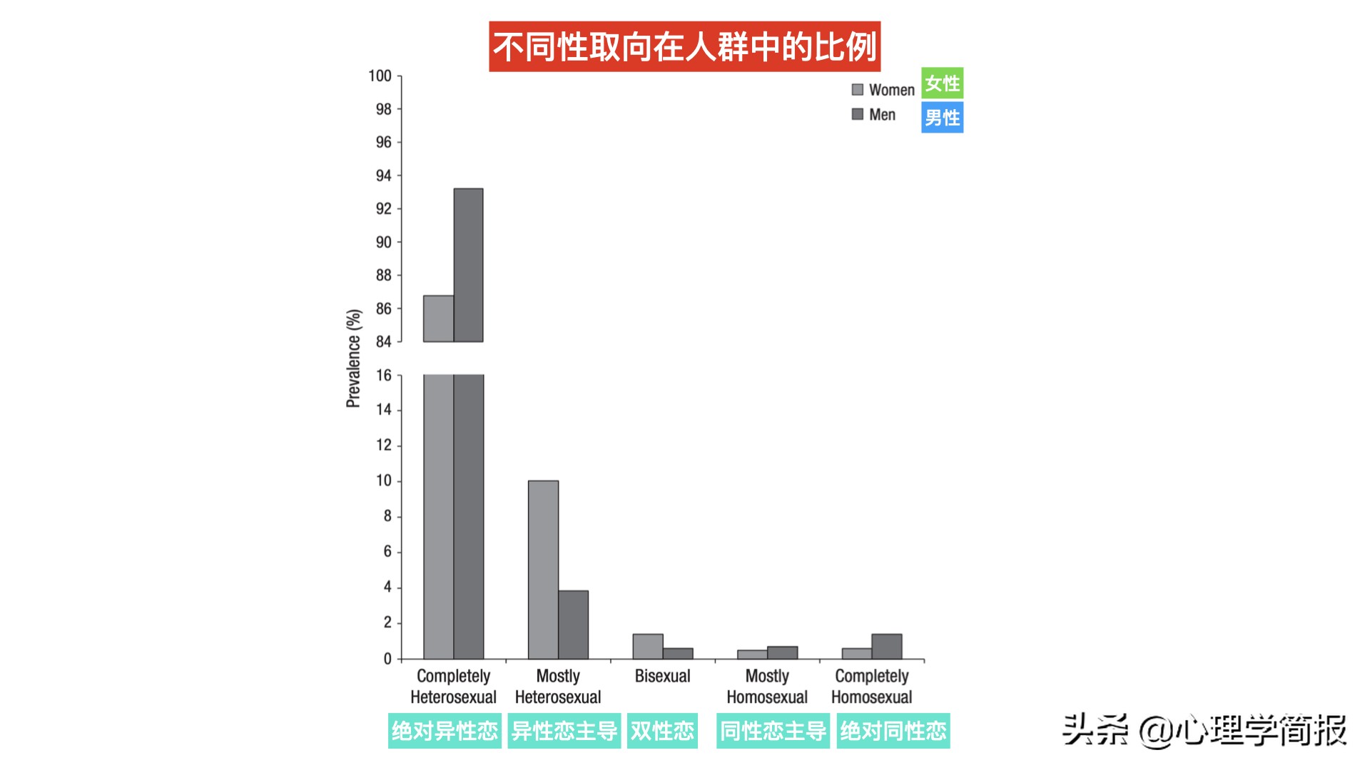 也就是说,男同性恋的比例高于女同性恋,双性恋女性的比例明显高于男性[2]。