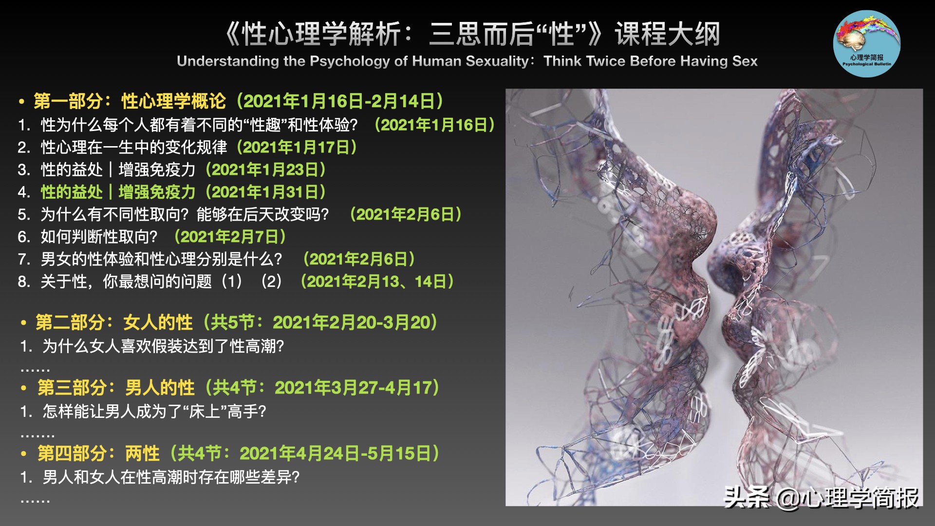 《心理学简报》独家品质原创免费系列课程《性心理学解析》大纲及时间预告