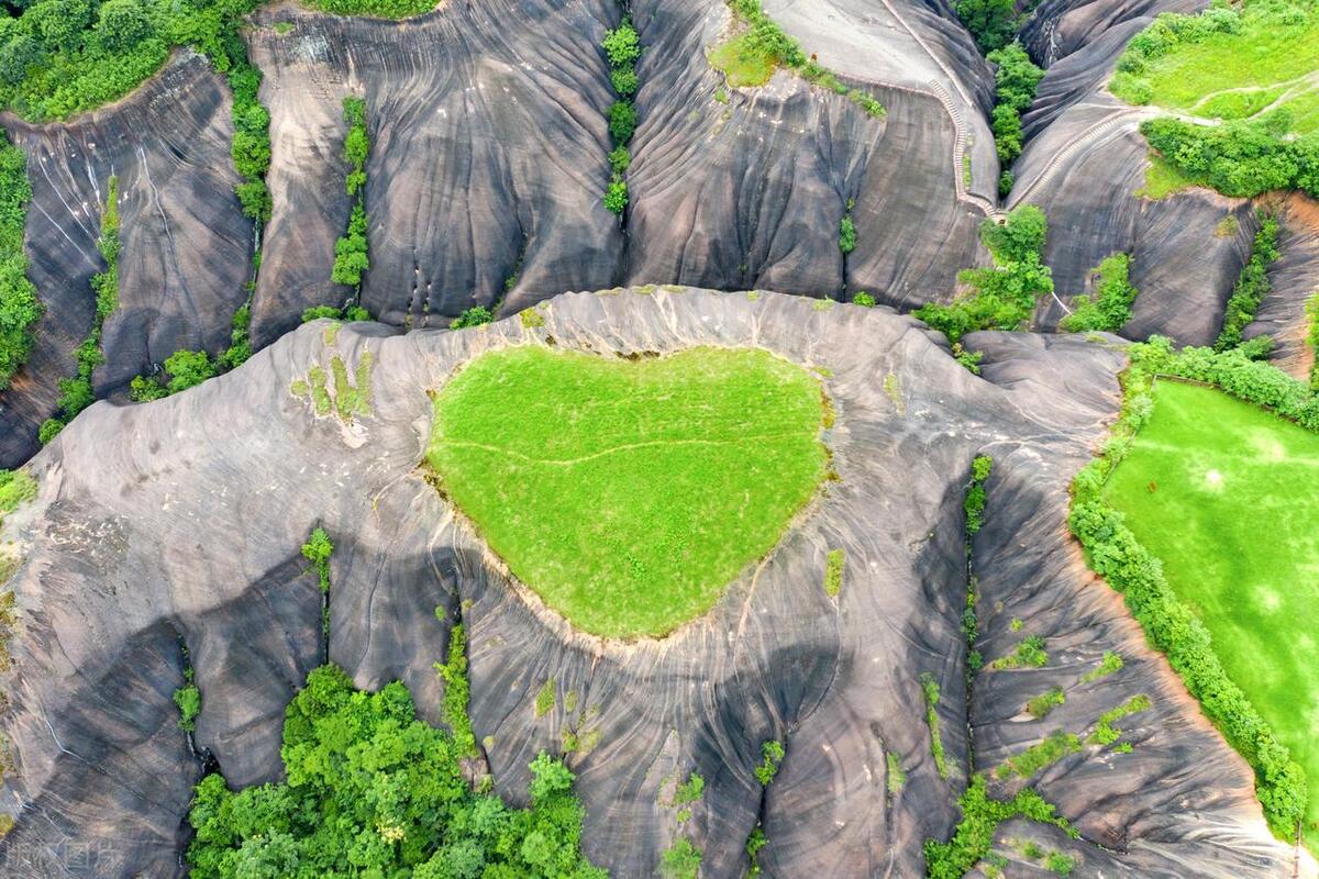 飞天山,欣赏丹霞地貌的绝佳去处,这里的丹霞地貌造型奇特,自带宽阔大气之感,这里最出名的还是丹霞之心,从高空俯瞰,山顶草地的形状犹如爱心,探寻自然奇景,壮观绝美。