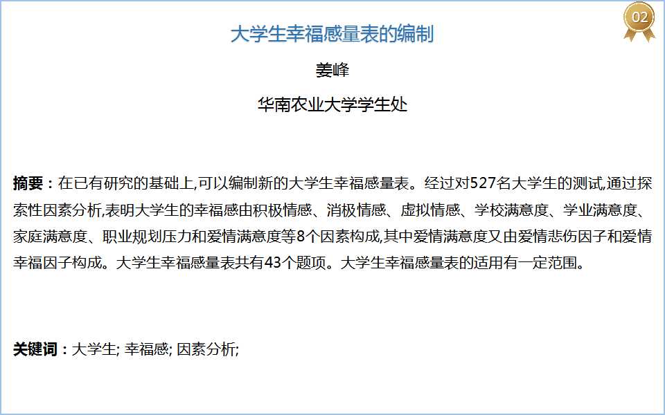 本期为大家推荐GWB量表,当你的研究有生活的满足感或幸福度指标的题时,就可以考虑使用GWB量表。