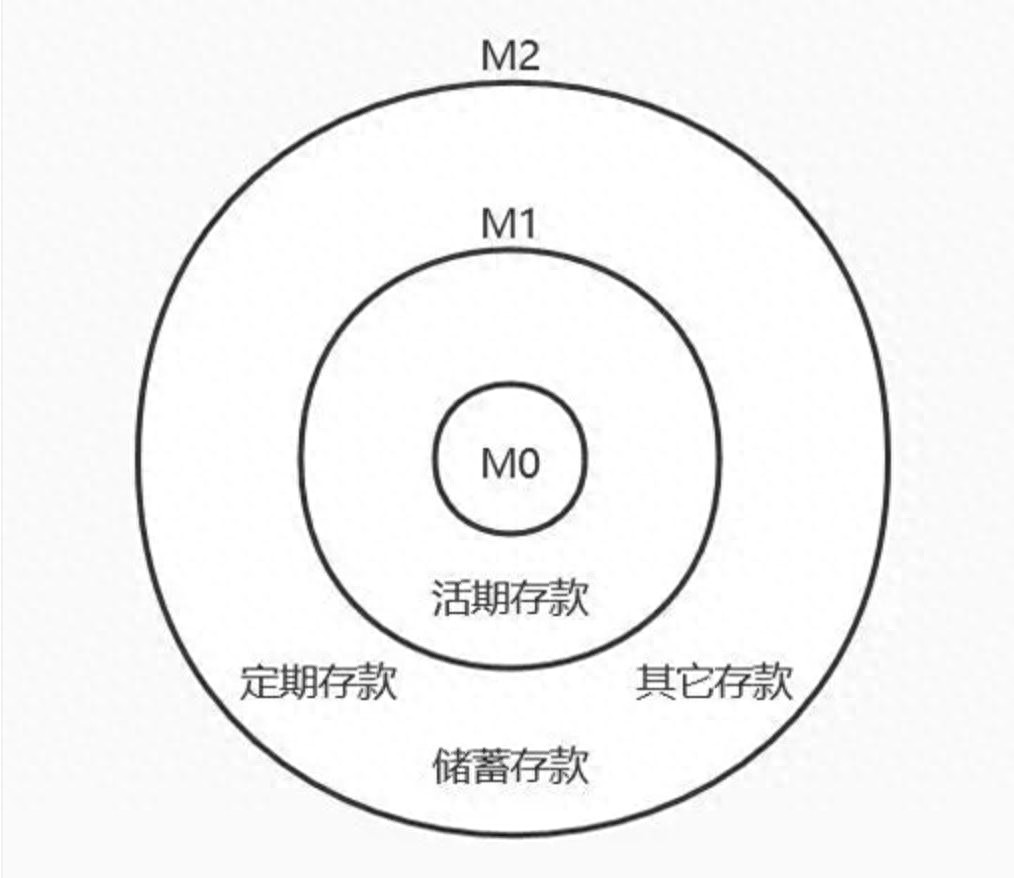 最底层是M0,叫做“流通中现金”,指的是银行体系外,各个单位的库存现金和居民手持的现金之和;