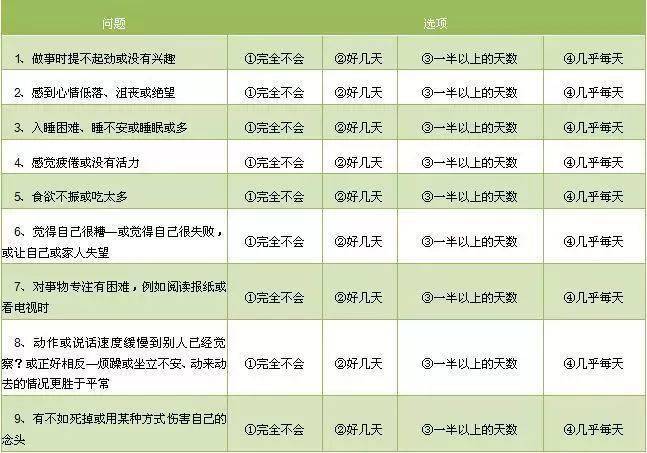 小编给大家推荐一种快速识别抑郁小策略:PHQ-9抑郁症筛查量表