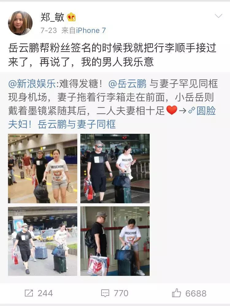 郑敏从机场回来,不管多晚,岳云鹏都会亲自开车接她回来,