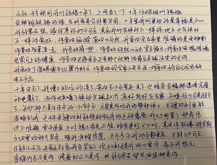 这次结婚纪念日,岳云鹏手写了一封情书。