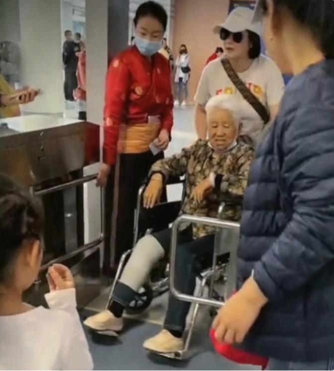 老人的年事已高,行动难免不便,只能坐在轮椅上。