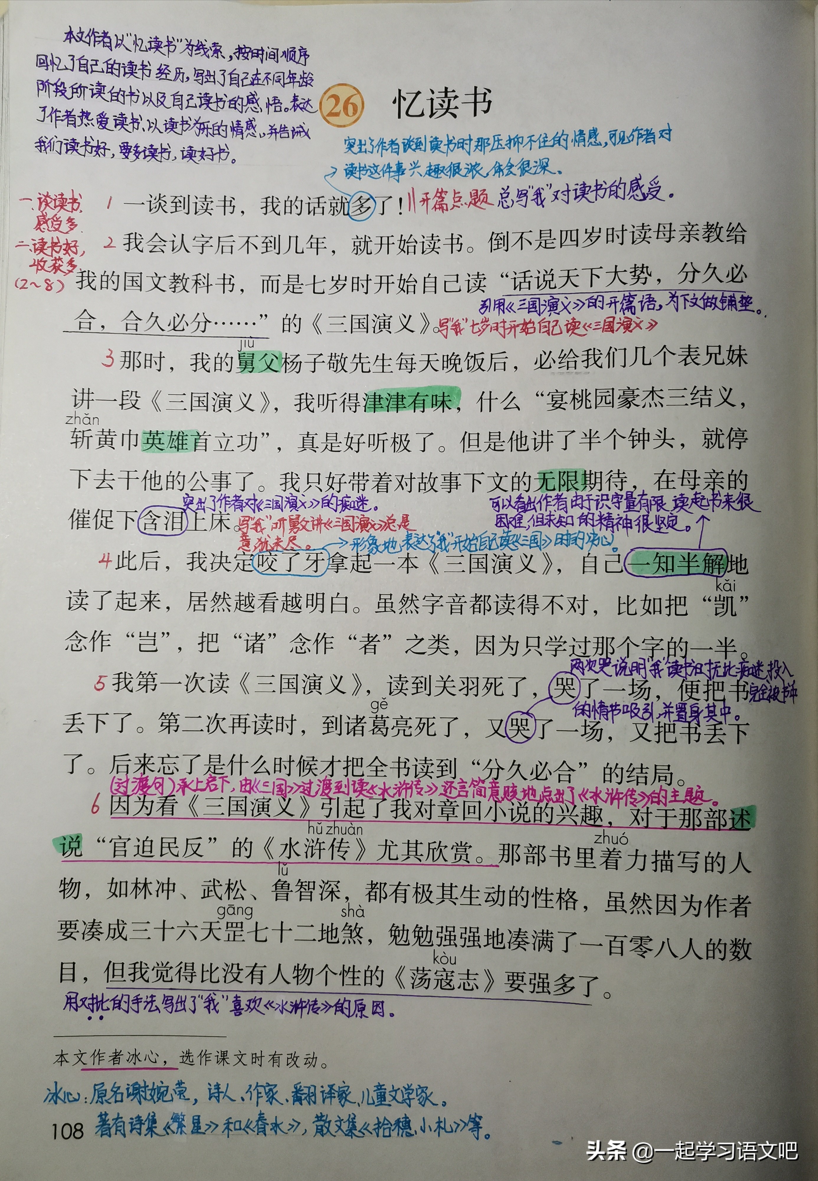 (二)第二部分“读书好,收获多”(第2—8自然段),按照时间顺序回忆“我”的读书经历。