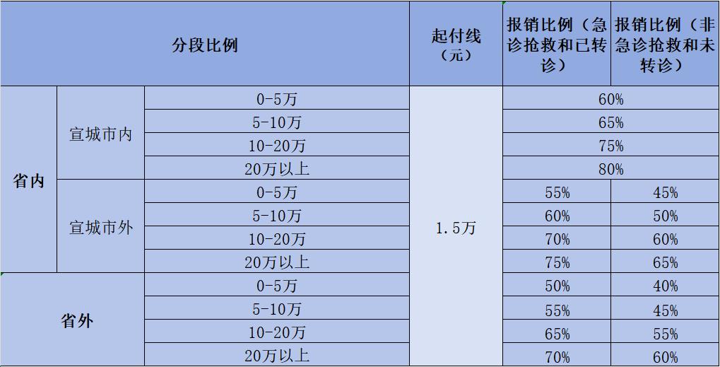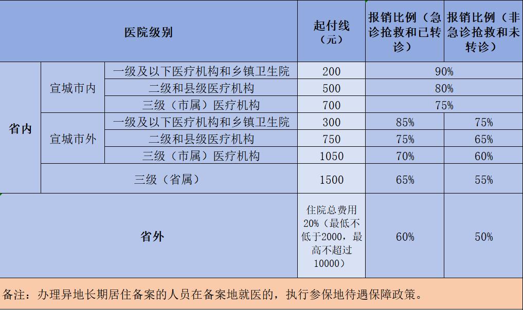 罕见病患者在定点医疗机构发生的符合药品法定适应症或有临床循证医学证据的门诊或住院合规罕见病药品费用,大病保险基金实行单行支付。统一起付线为 2 万元(与患普通疾病发生的大病保险1.5万元起付线分开计算),起付线以上部分继续执行大病保险分费用段按比例报销,支付金额计入大病保险年度最高支付限额。已办理异地长期居住备案的跨省人员罕见病待遇按照省内政策执行;异地转诊就医人员以及异地急诊抢救人员大病保险各段报销比例下降 10 个百分点,未转诊的临时外出就医人员大病保险各段报销比例下降20 个百分点。