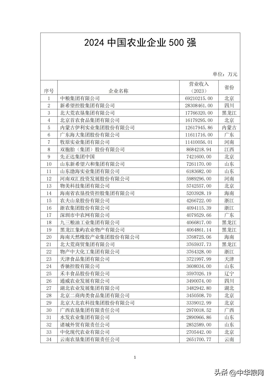 2024中国农业企业500强