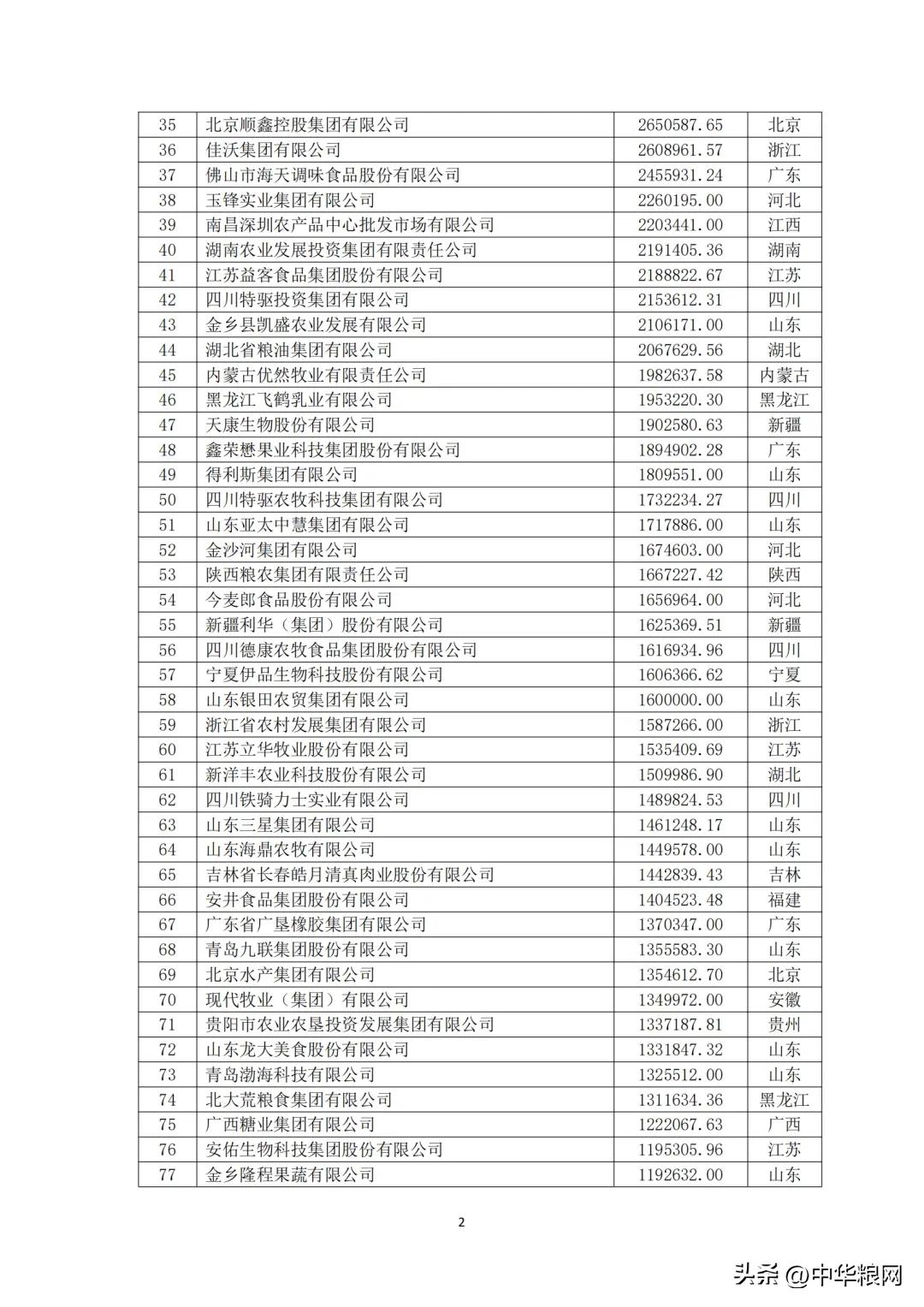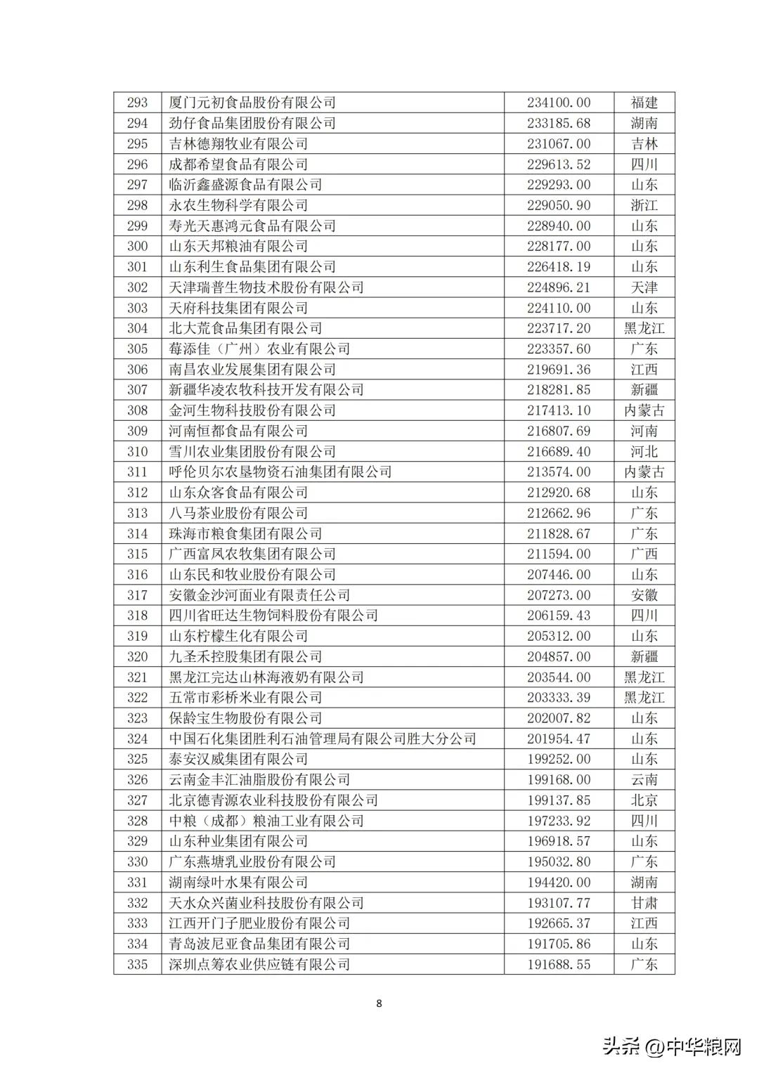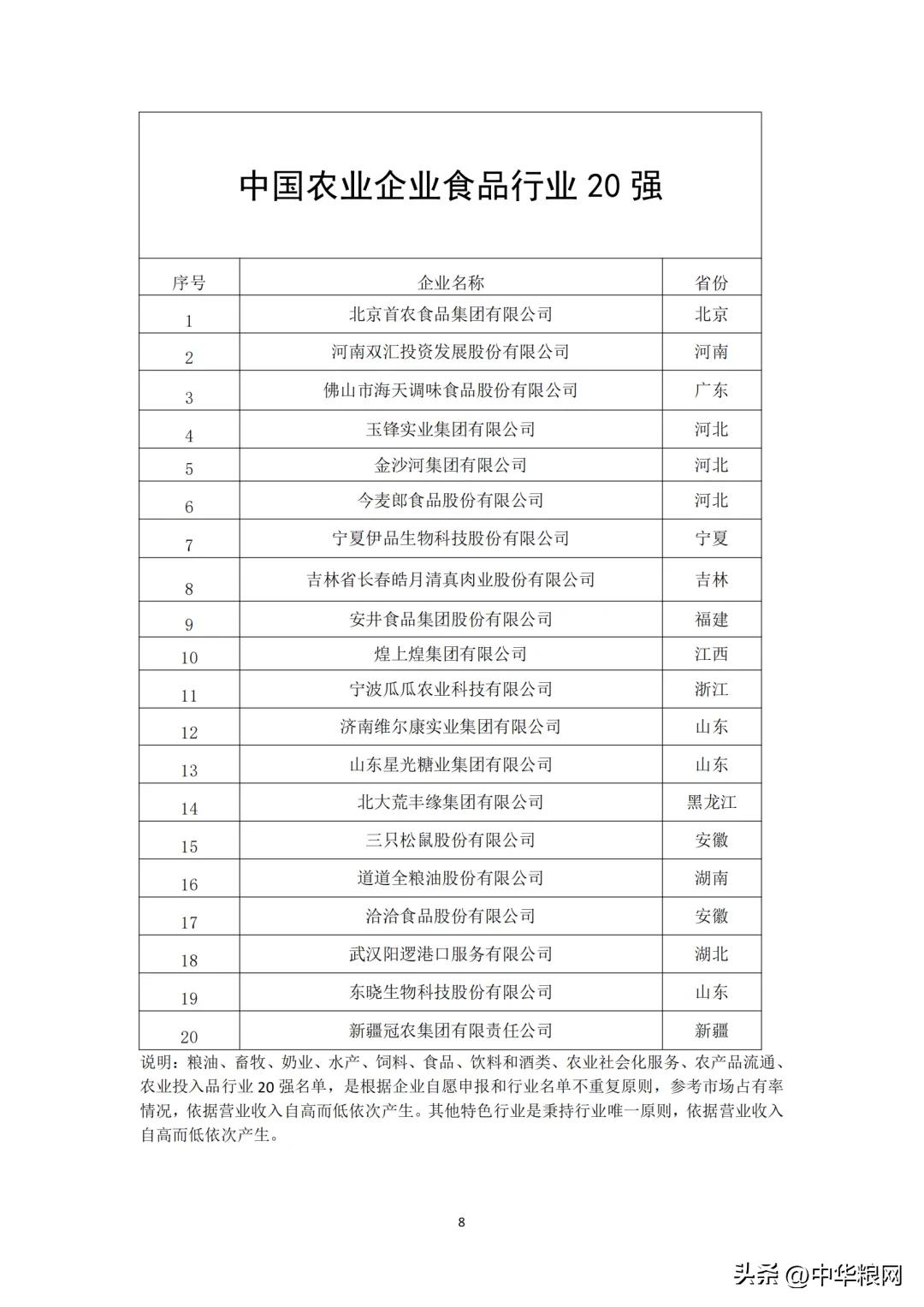 中国农业企业食品行业20强