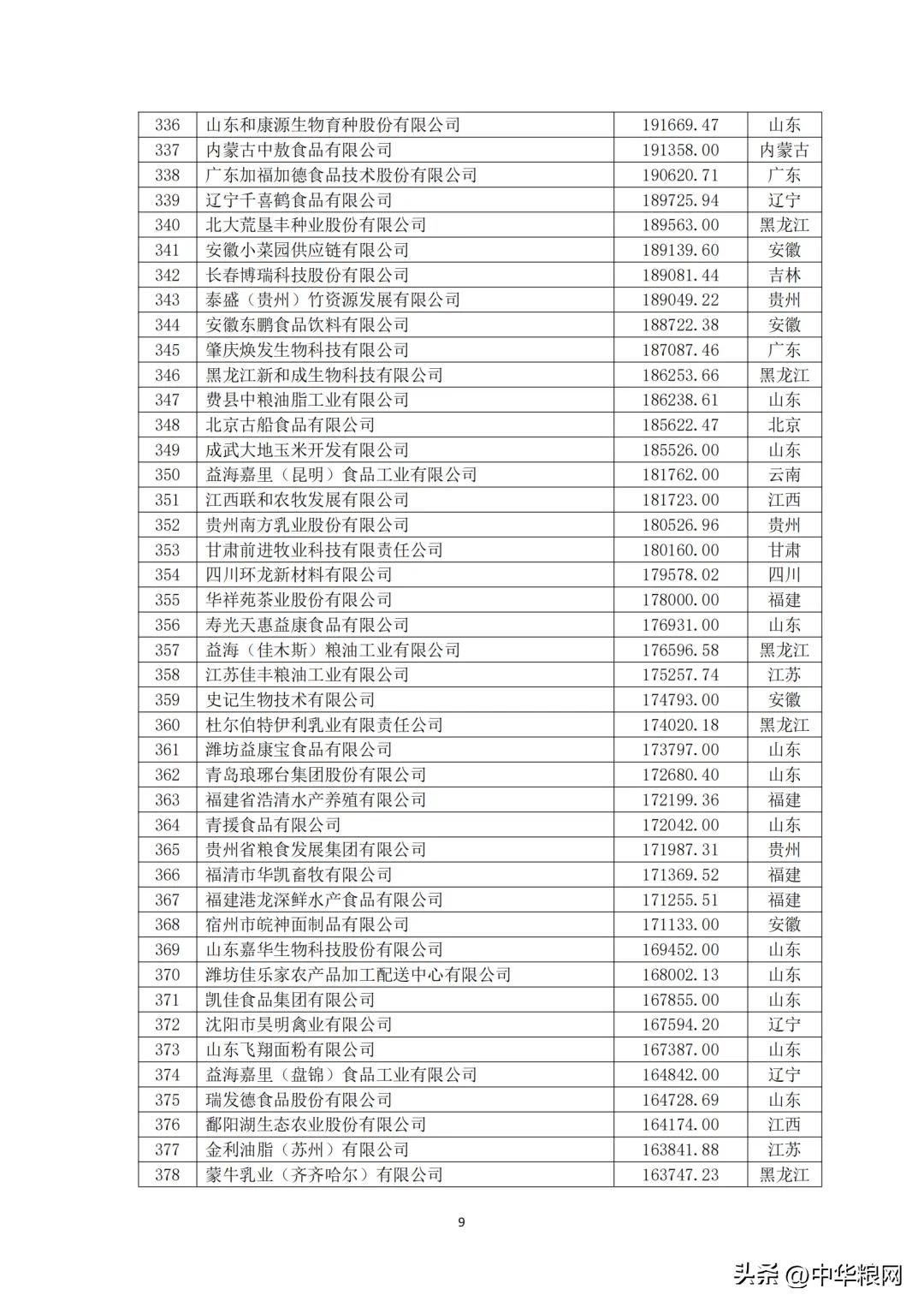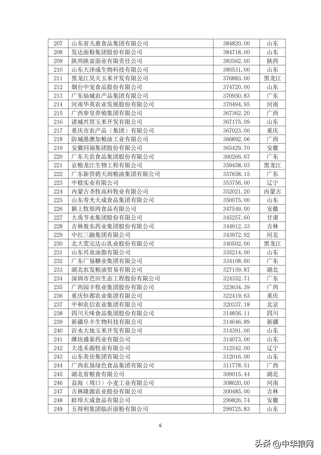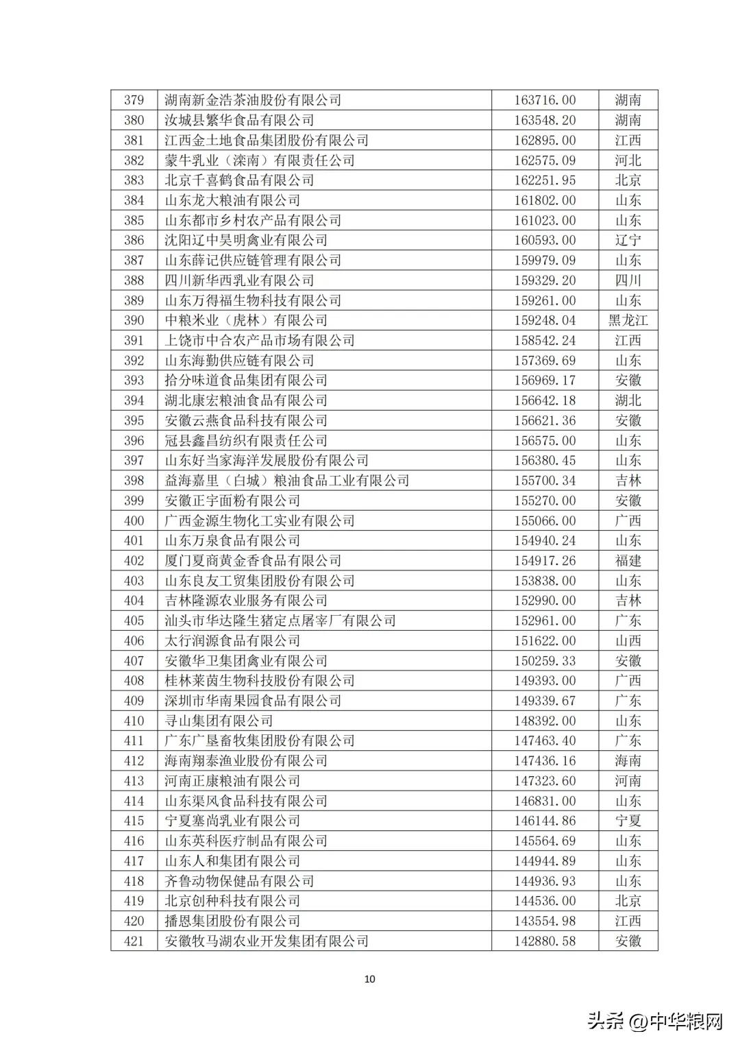 中国农业企业食品行业20强