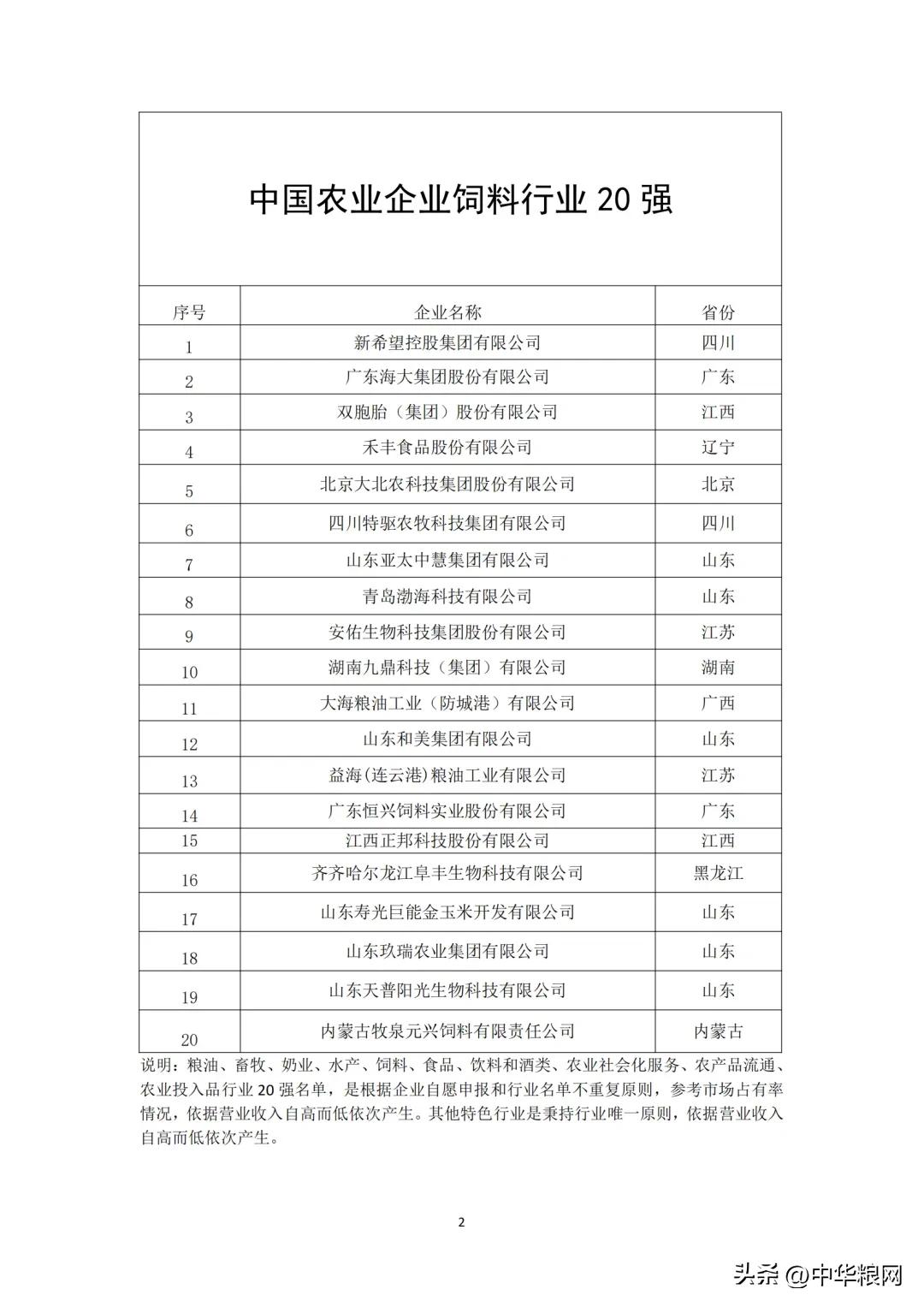 中国农业企业饲料行业20强