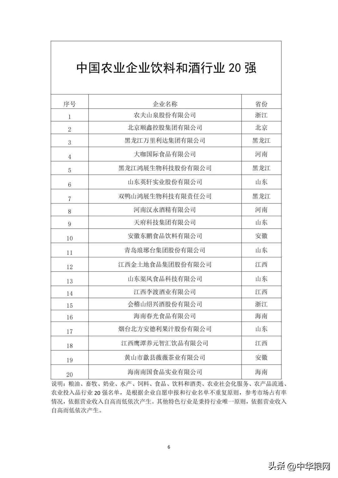 中国农业企业饮料和酒行业20强
