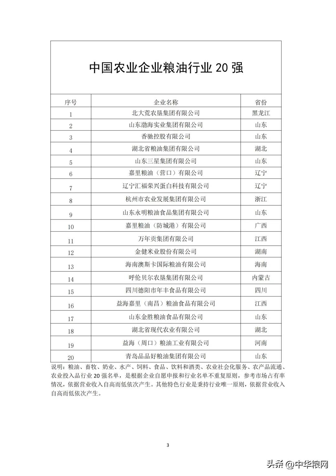 中国农业企业粮油行业20强