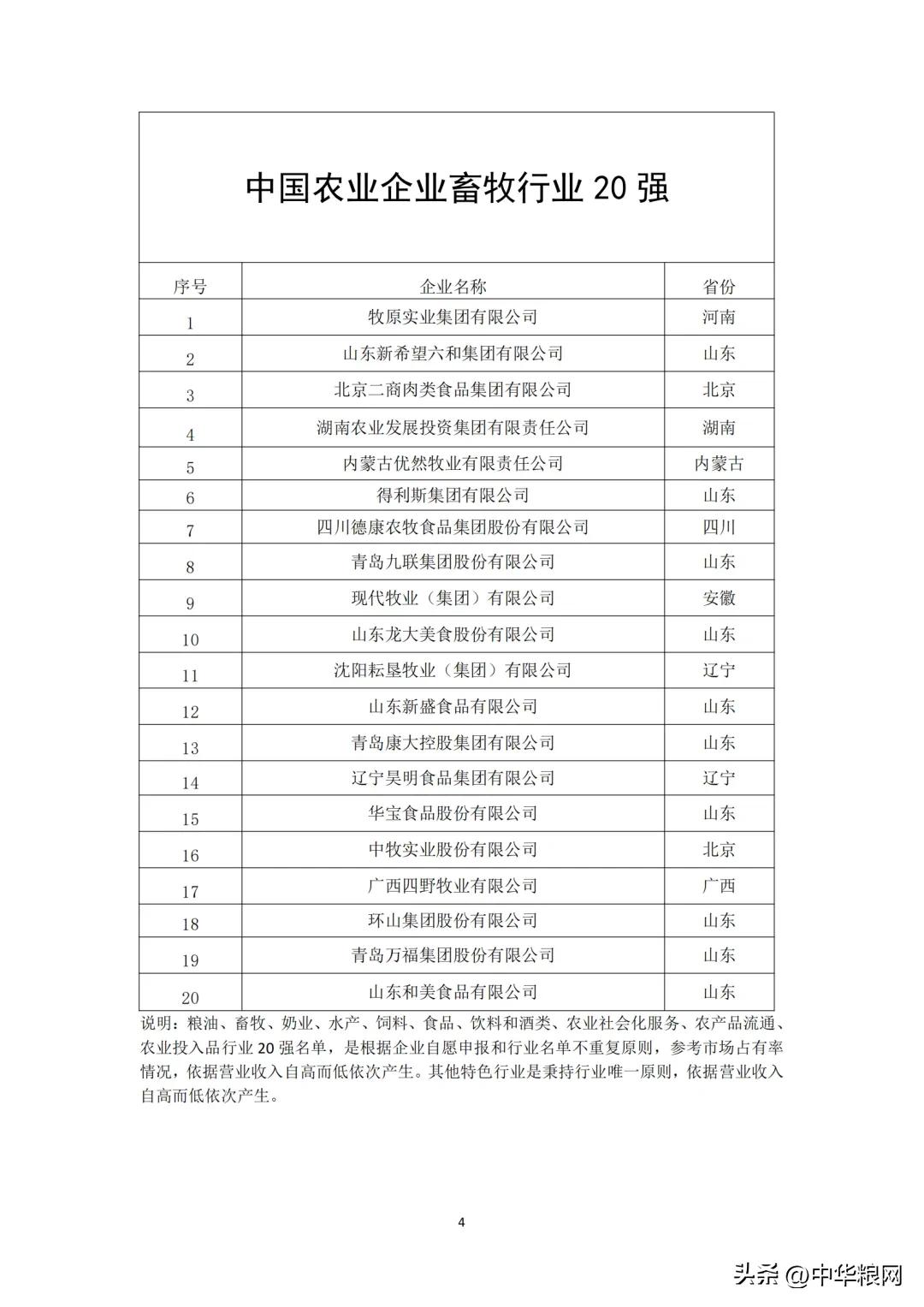 中国农业企业畜牧行业20强