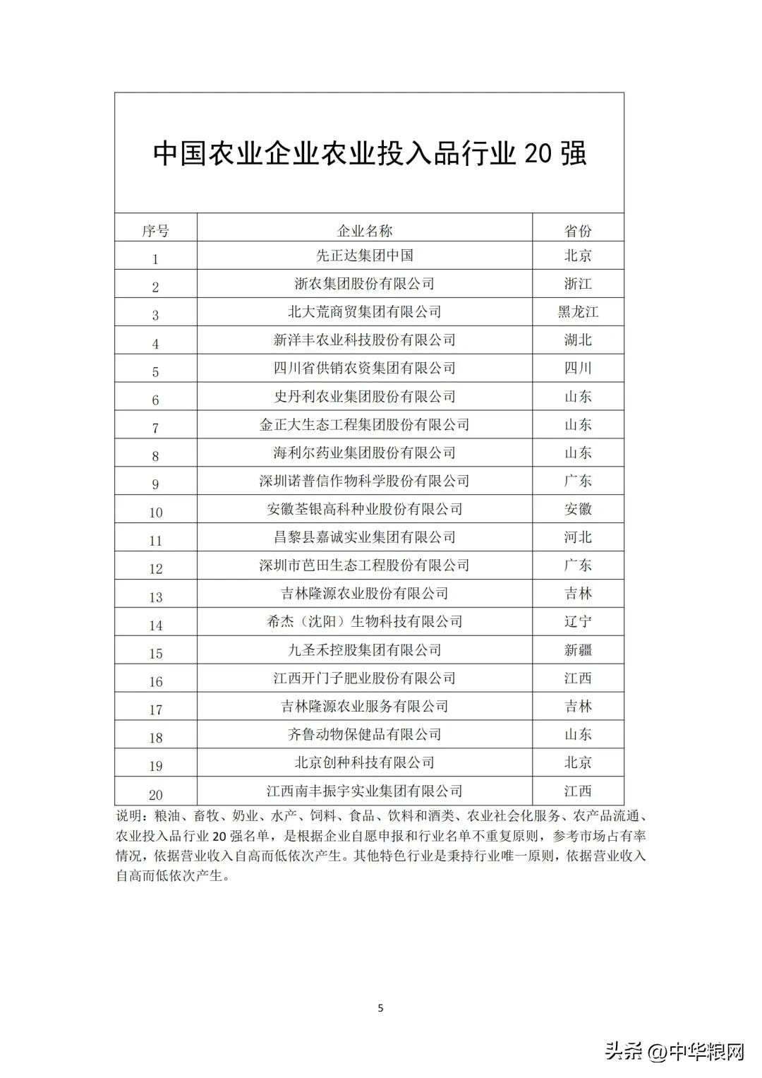 中国农业企业农业投入品行业20强