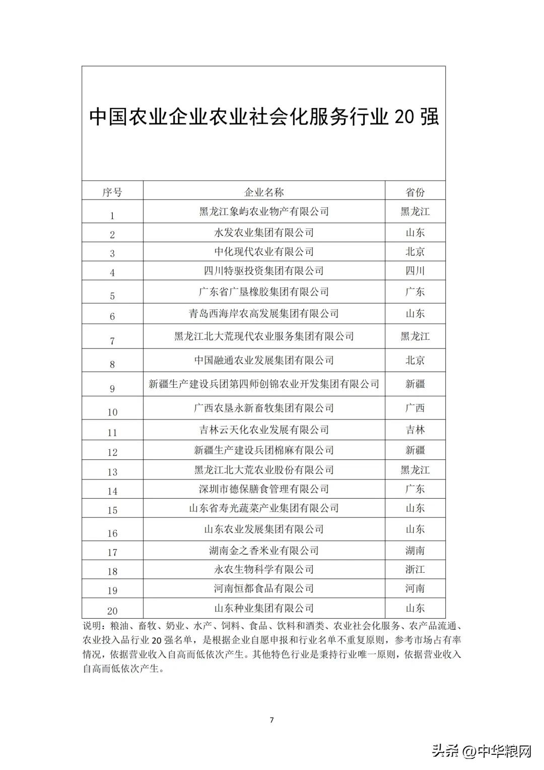 中国农业企业农业社会化服务行业20强