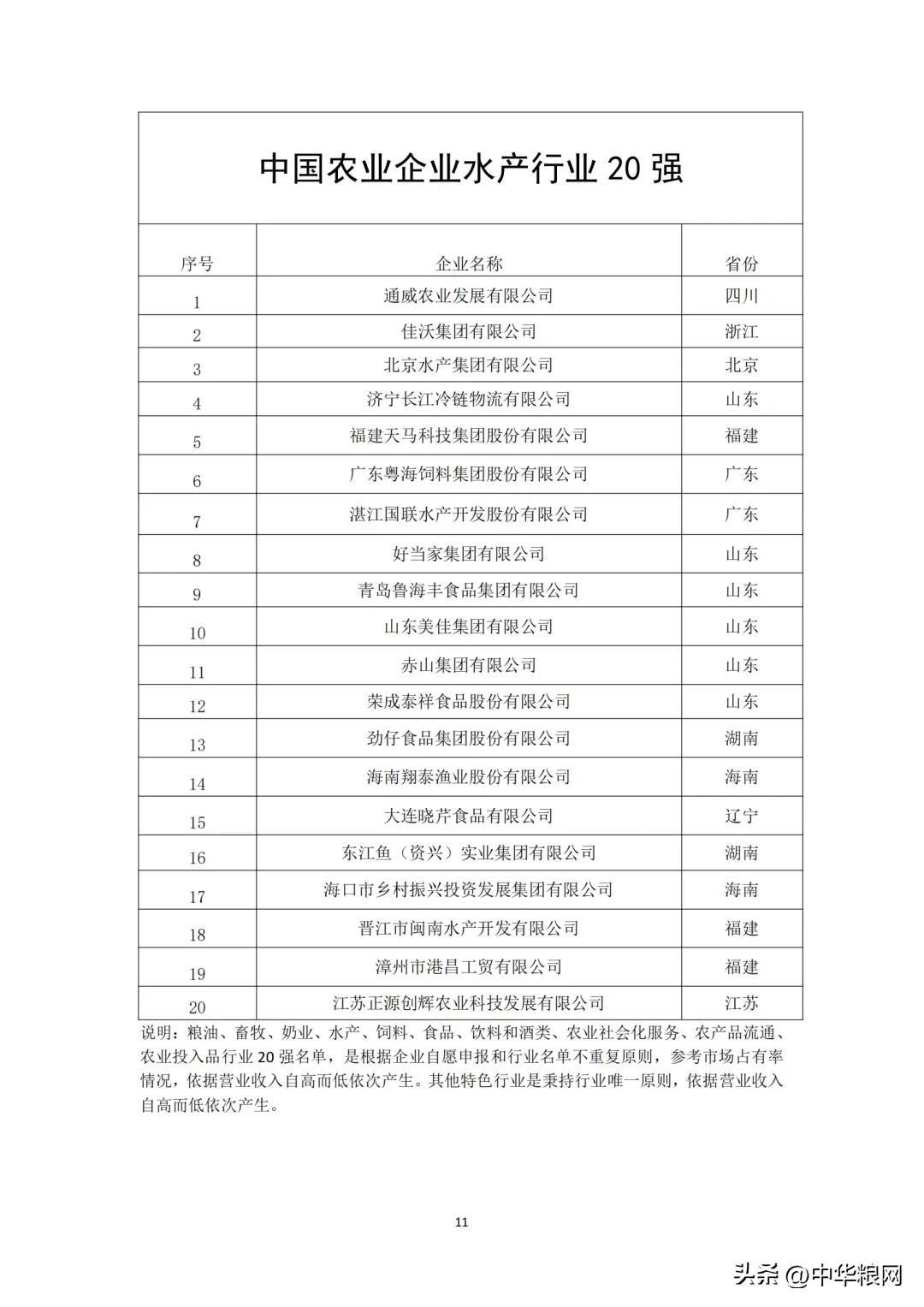 中国农业企业水产行业20强