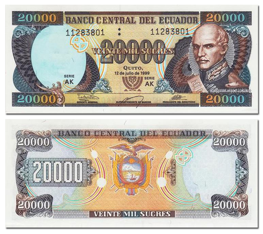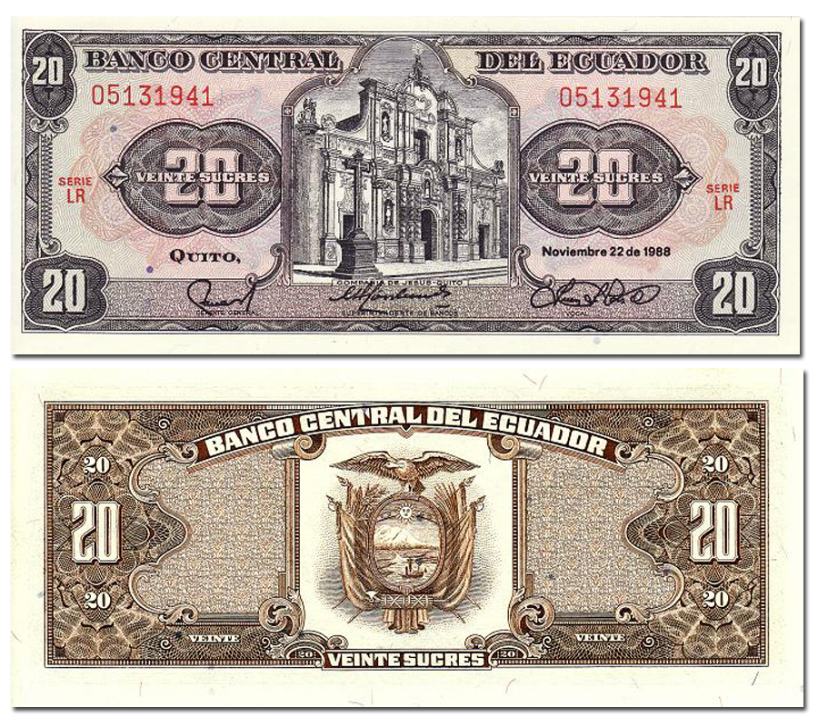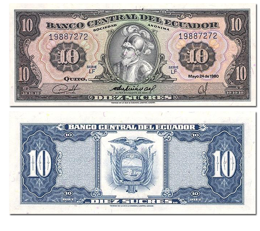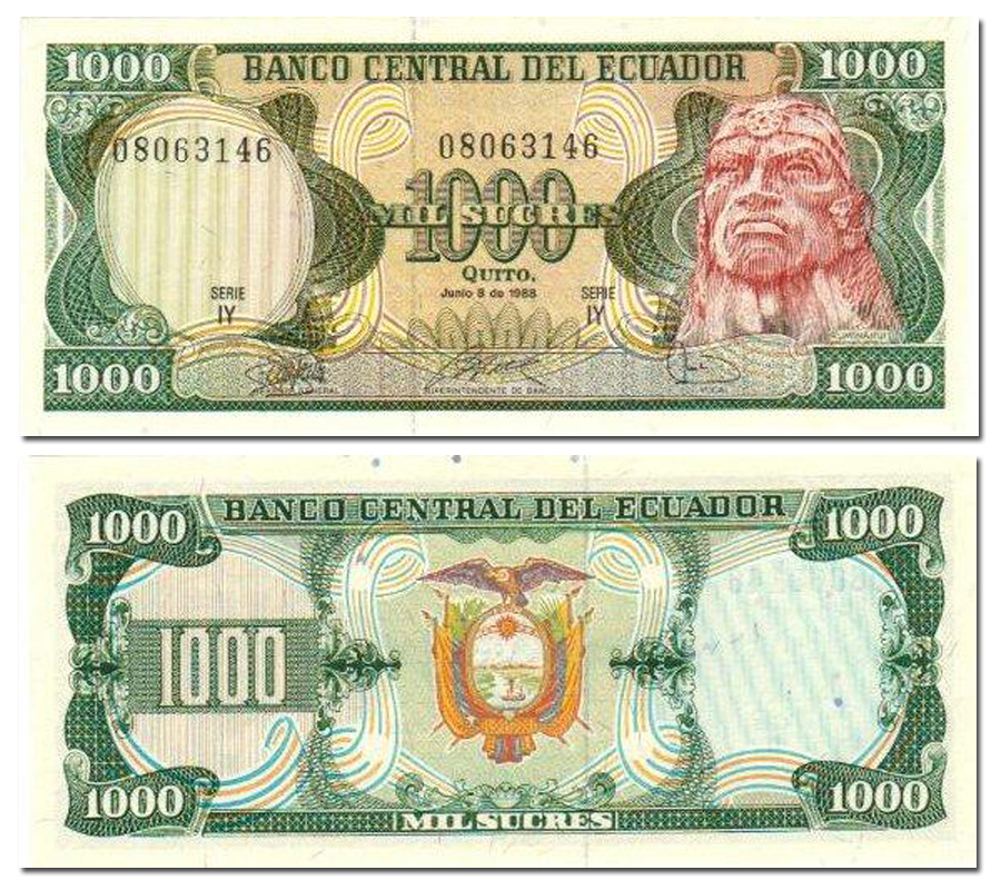 我拥有的第一张外国货币(小时候从马路上捡到的)。在90年代国内很多骗子用这个国家的钱冒充美元骗老太太。这个货币就是厄瓜多尔-苏克雷。