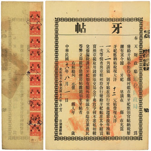 万历《扬州府志》:“俗之经纪,皆官为给帖,凡鱼盐豆谷,觅车雇船骡马之类,非经纪关说则不得行”