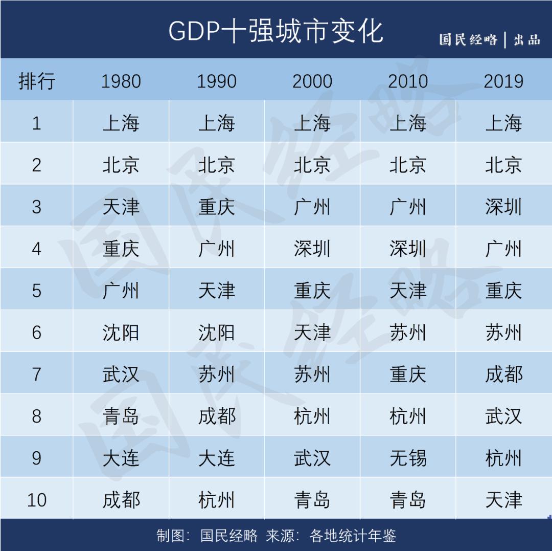 这从中国城市格局的变化就可见一斑。1980年,内地经济10强城市分别是上海、北京、天津、重庆、广州、沈阳、武汉、青岛、大连、成都。这些城市要么是传统工业城市,要么是区域中心城市,计划经济时代的城市格局早已定型。