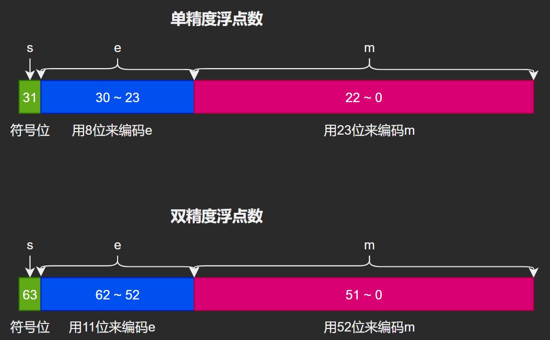 IEEE中规定的浮点数表示方法有效解决了这个问题,下面给出其具体表示法: