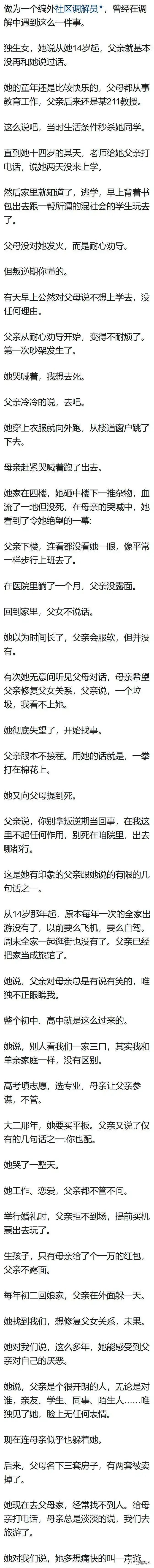 正如一位网友所说:"说到底,爱孩子这事儿,不是靠嘴巴说的,而是看行动里有没有那份真心,父母的眼神、每一次的牵挂、背后的默默支持,都是爱的证明,咱们得用心去感受,别轻易就被表面的冷淡给骗了。"