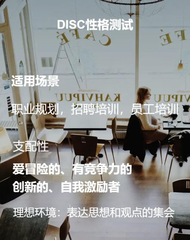 做职业规划并非简单地制定一项要干什么的计划,而是建立在对个体(一个人)足够了解的基础之上。浅层的了解包括知识、技能、经验,更深层次的维度不容易被察觉,所以需要以DISC性格测试加以测验。有了测验结果之后,可以判断出某个人是支配性,还是稳定性,抑或服从性的人格。