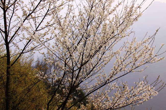 野樱桃花序伞形或近伞形。伞状花序或有梗的总状花序,花先叶开放,花有白色、粉红色等,4~7朵呈总状花序或2~7朵簇生;花瓣卵圆形或至近圆形。