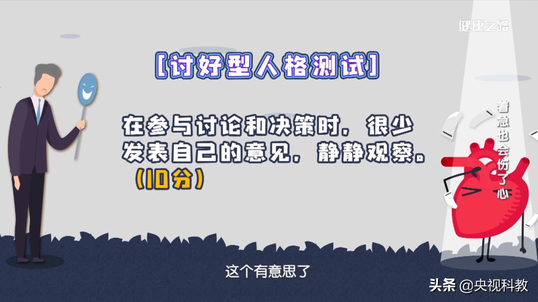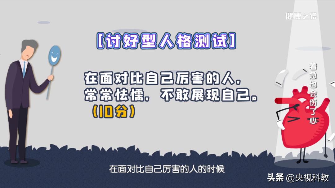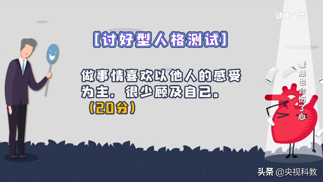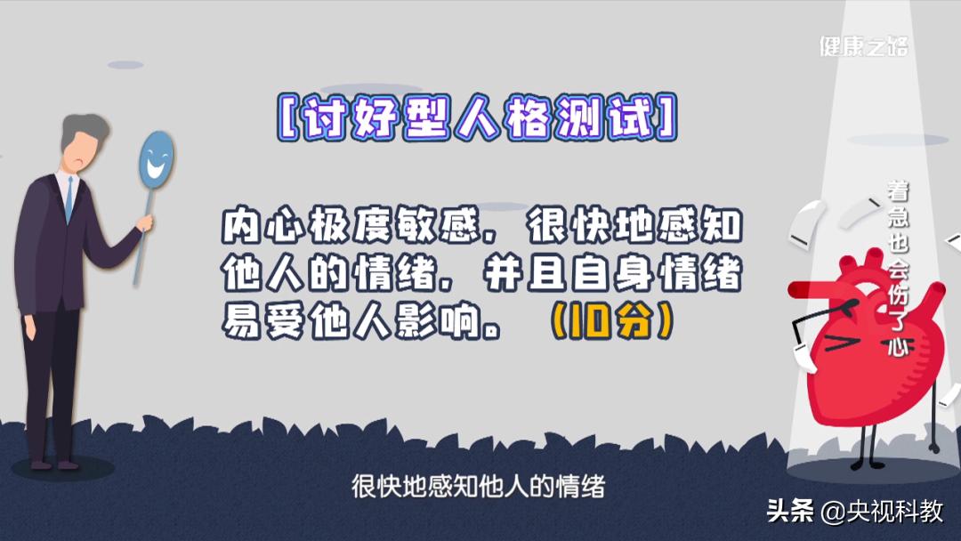 分数≥60就属于讨好型人格,分数越高,患心理心脏病的风险就越高。讨好型人格易让人经常处于慢性应激状态!