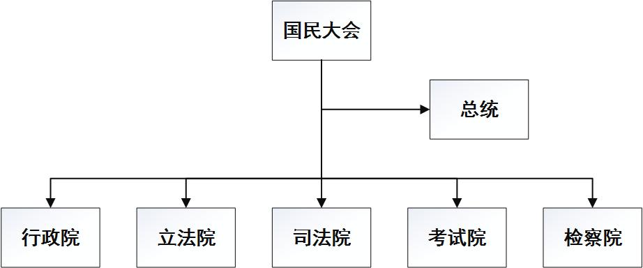 基于孙中山的“五权独立”理念,1946年12月25日中华民国制宪会议通过了五权宪法。五权宪法的政权架构如下: