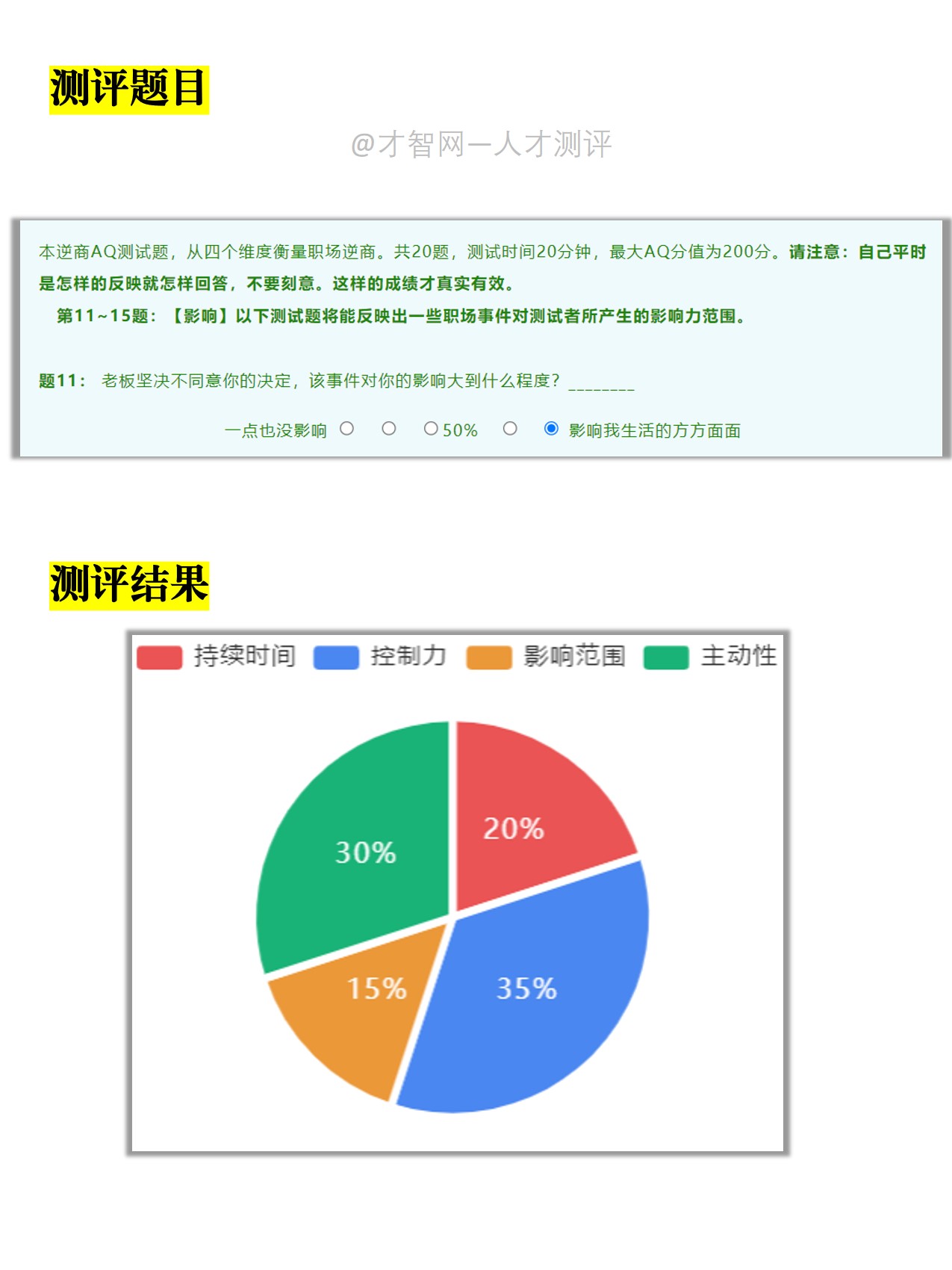 AQ划分为控制力、主动性、影响范围和持续时间四部分,分别从这四个维度衡量一个人的自我控制能力、心态的积极程度以及对环境、周围人群和自我情绪的把握能力。