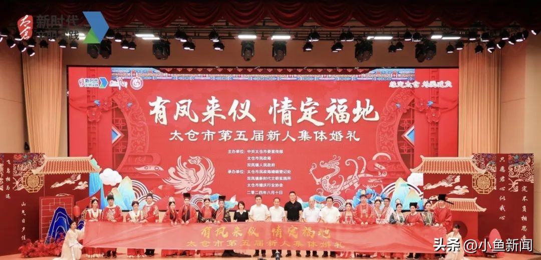 太仓市举办了“有凤来仪 情定福地”第五届新人集体婚礼暨颁证仪式活动,8对新人共同参与并展示了周制汉婚、大唐盛世、宋制雅韵、大明风华四朝婚礼礼仪,活动现场还为双凤镇、浏河镇、浮桥镇、陆渡街道四家户外颁证基地授牌,宣布了太仓市第一批婚俗改革典型案例获奖单位和婚姻家庭辅导经典案例获奖单位,推进婚姻领域移风易俗。