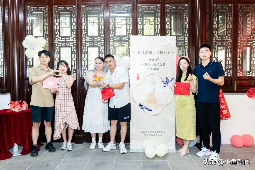 昆山亭林园结婚登记点开展了“良缘夙缔 共约七夕”1周年结婚纪念日打卡活动,10对去年登记的夫妇共同在预约凭证上加盖1周年结婚纪念章,烙下爱的“永恒印记”,现场工作人员还为每对夫妇准备了结婚纪念相框,送上诚挚的祝福。在婚姻登记处结婚颁证大厅内,“为爱‘把脉’ 快乐生活”新婚主题沙龙活动,让新人们在游戏中学习实用的婚姻沟通技巧,引导新人树立正确的婚姻观、家庭观。