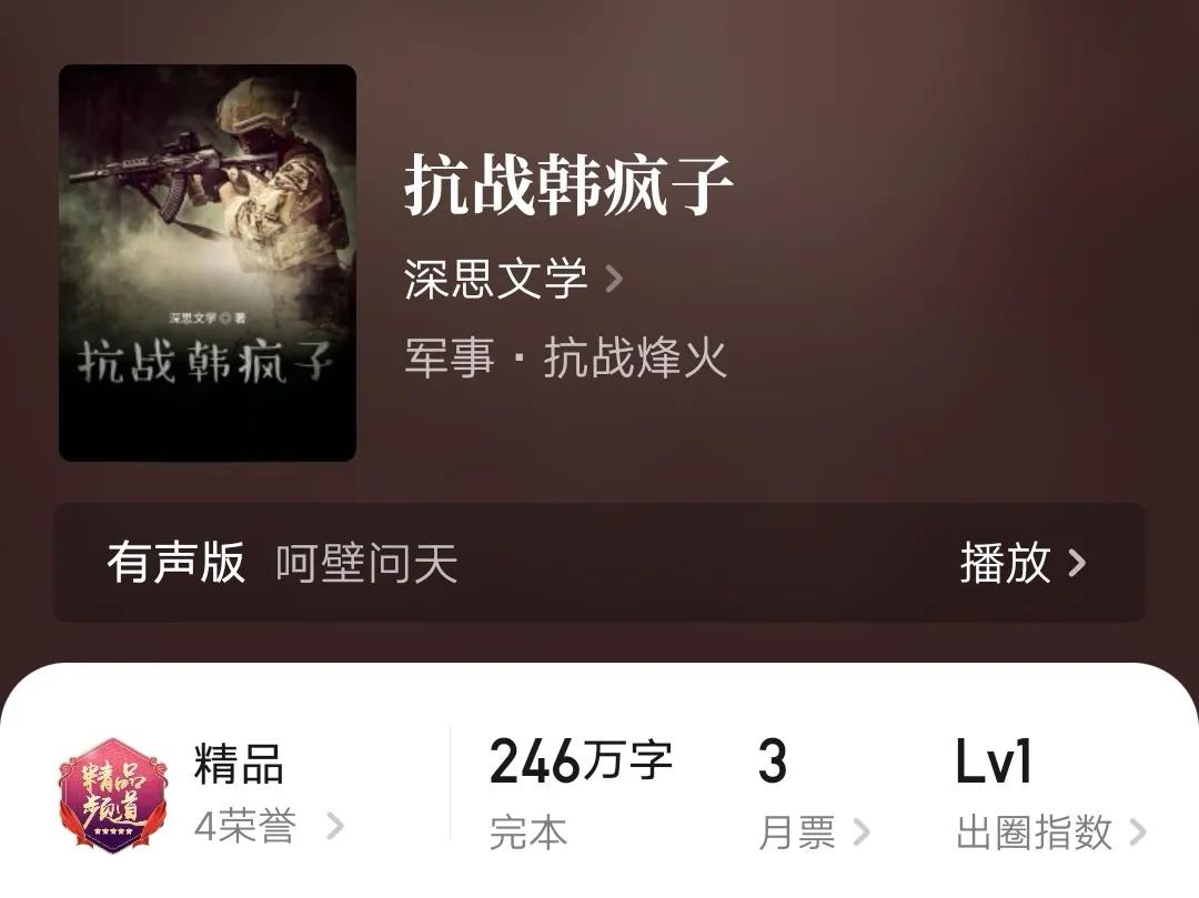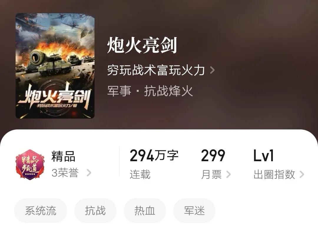 你说巧不巧,还是一本亮剑开局的小说,不过这本就没有太大的外挂了,剧情以及细节逻辑方面也打磨的稍微合理了一些,不是那么的偏小白,刚开始有很多亮剑原剧情的二次创作,后面也发展了作者很多原创剧情。