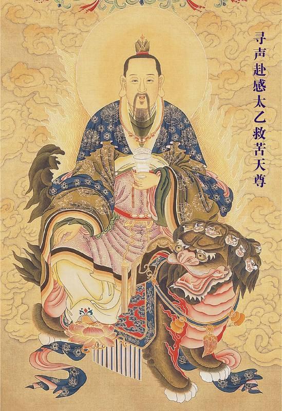 “爱河千尺浪,苦海万丈深”,表白接云:“欲免轮回苦,大众转天尊”,“太乙救苦天尊”。此天尊于天界品位之高,是与三清四御同等尊贵的。