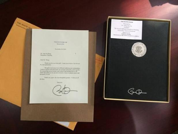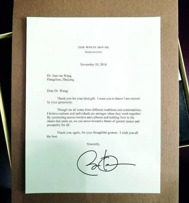 王建安也通过Betty给奥巴马送了一份礼物,之后收到的这封感谢信,是奥巴马对这份礼物的感谢信。