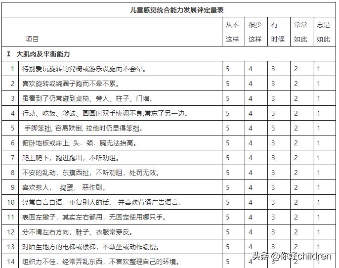 测一测是否感统异常?《儿童感觉统合能力发展国际通用评定量表》