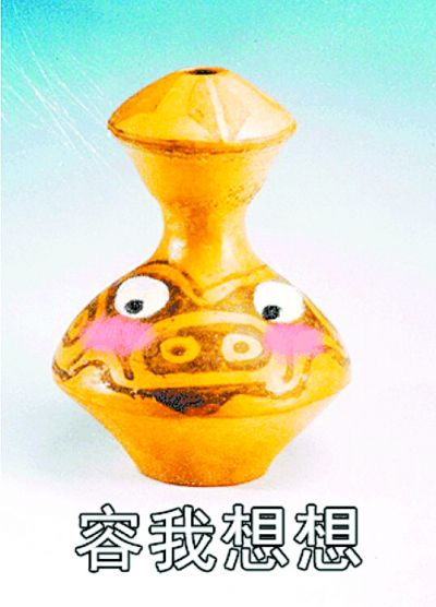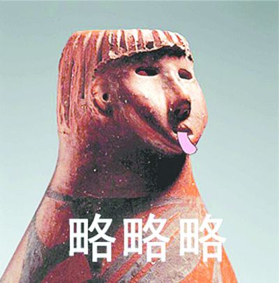 以人头形器口彩陶瓶为原型制作的“略略略”表情包