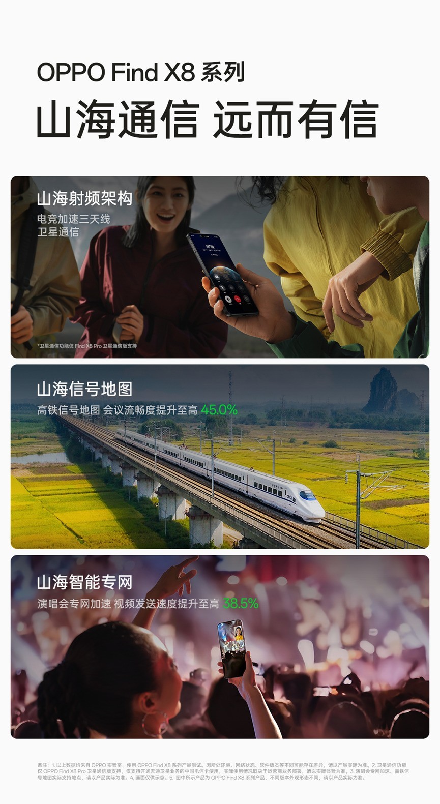 “山海通信”技术着重解决手机在复杂通信环境下的信号难题。就比如在Find X8系列上,OPPO在硬件方面采用了高穿透天线和独家电竞加速三天线设计,保障了移动网络和无线网络的稳定连接,并且支持5.5G网络,在网络体验上 “快人一步”。同时,Find X8系列总共配备了3根5GHz Wi-Fi天线,分列机身顶部和两侧,即便橫置双手握持手机,也不会对三根天线进行完全遮挡,始终能有天线进行高质量信号传输。