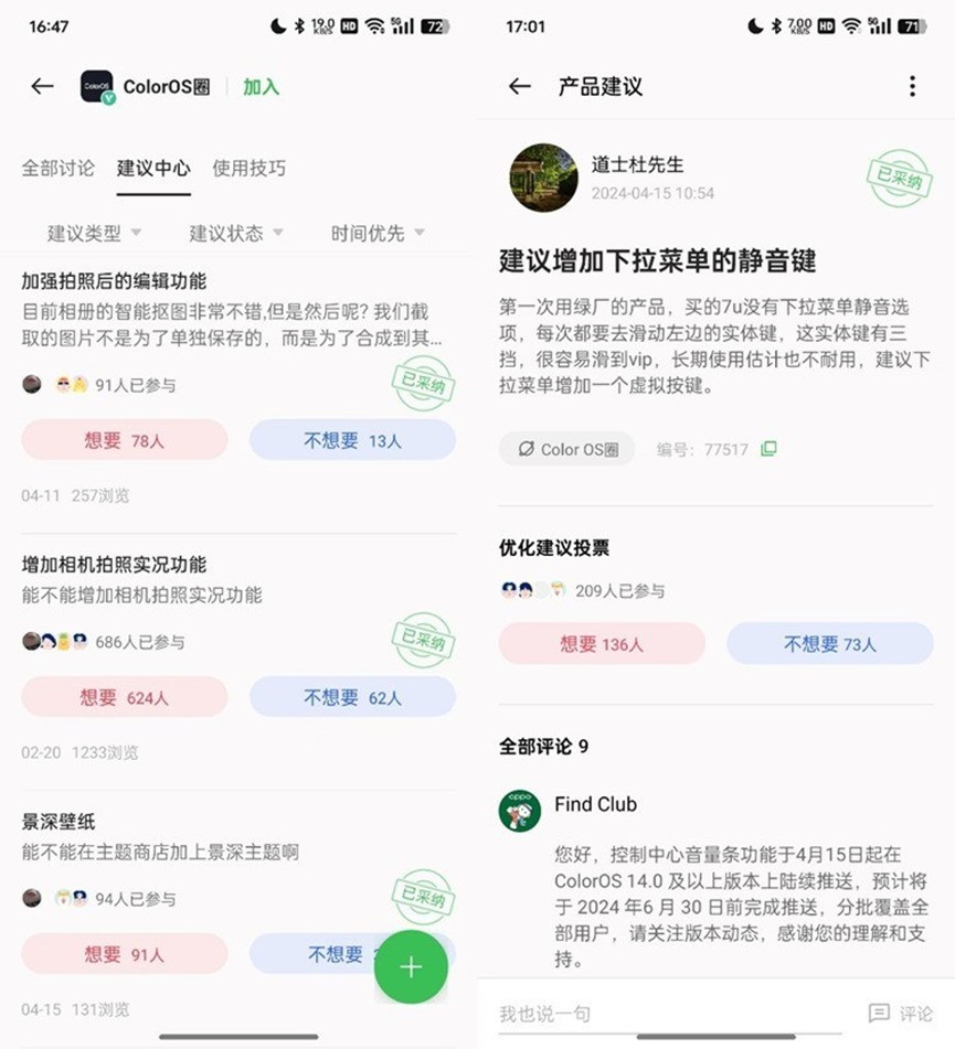 而为了深入了解用户需求,ColorOS重启共创者星球,并积极组织内部人员走出去访谈。团队与超过2000名用户进行面对面交流,广泛收集意见和建议。也正是这一举动,让ColorOS团队发现了许多此前未重视的需求。
