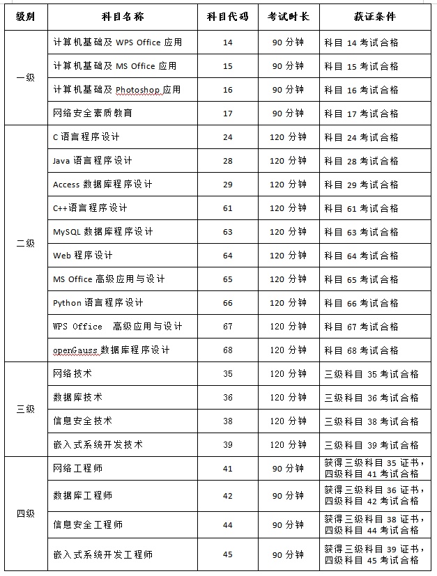 (一)三级和四级科目不再限制在考试第一天完成考试,考点可根据实际情况进行考场编排。