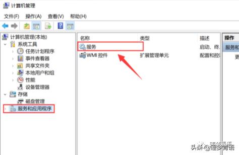2.双击打开【服务和应用程序】中的【服务】。